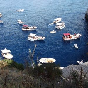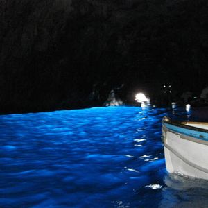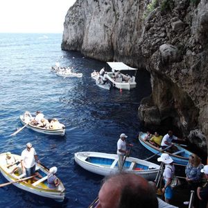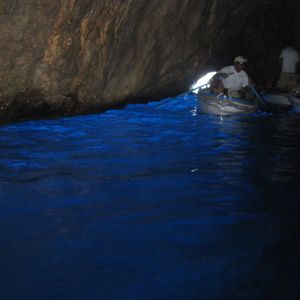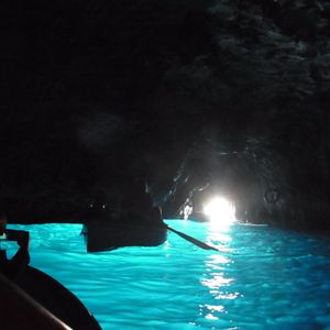 ⇒私たちはカプリ島到着後、バスを乗り継ぎ、青の洞窟のすぐそばまで行って陸から直接手漕ぎボートに乗って洞窟に入りましたが、船で洞窟付近まで行き、船からボートに乗り移って洞窟に入るツアーもあるようでした
