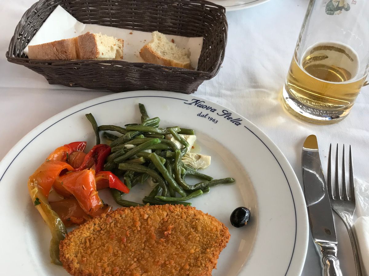 ランチも美味しかったです。(パスタ、豚肉のカツレツ、パン) 飲み物は別料金です。