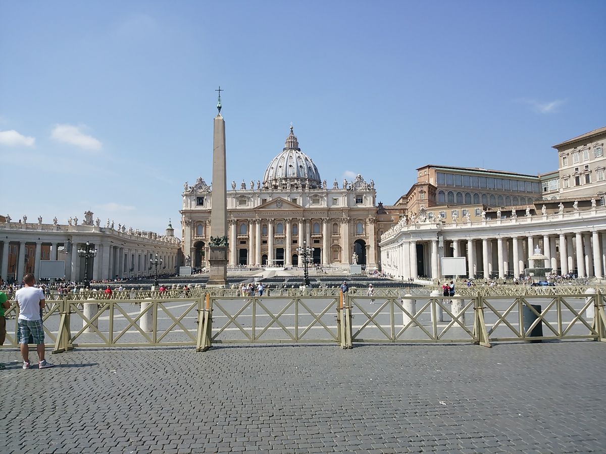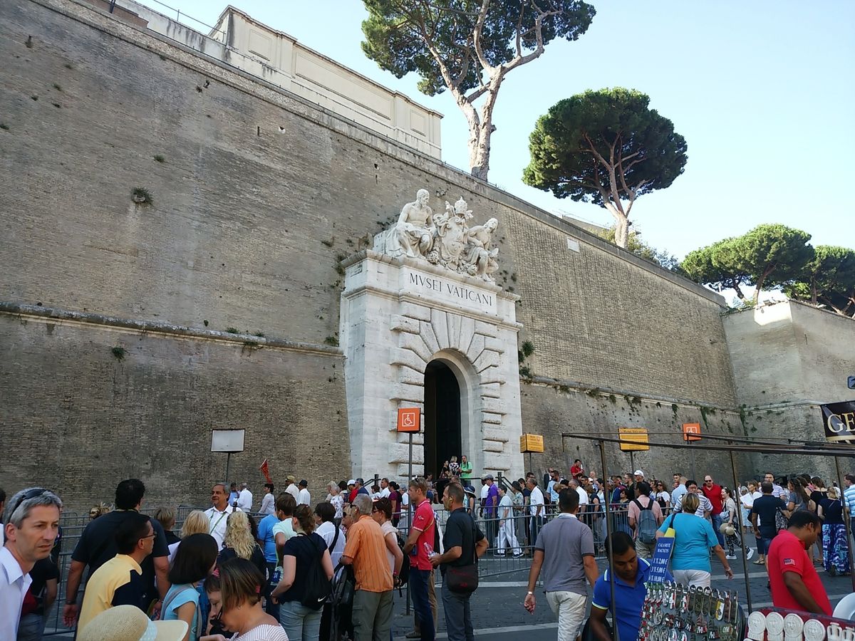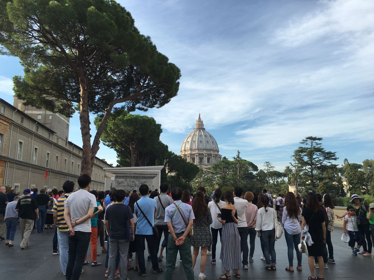 バチカンのお堀をぐるっと取り囲む長蛇の列を横目にスムーズに入場できる、とても良いツアーです。惜しむらくは、私たちが20リットルのリュックを持っていたため、入場口で預けねばならず、サンピエトロ寺院へ入れる出口を使えなかったこと。
