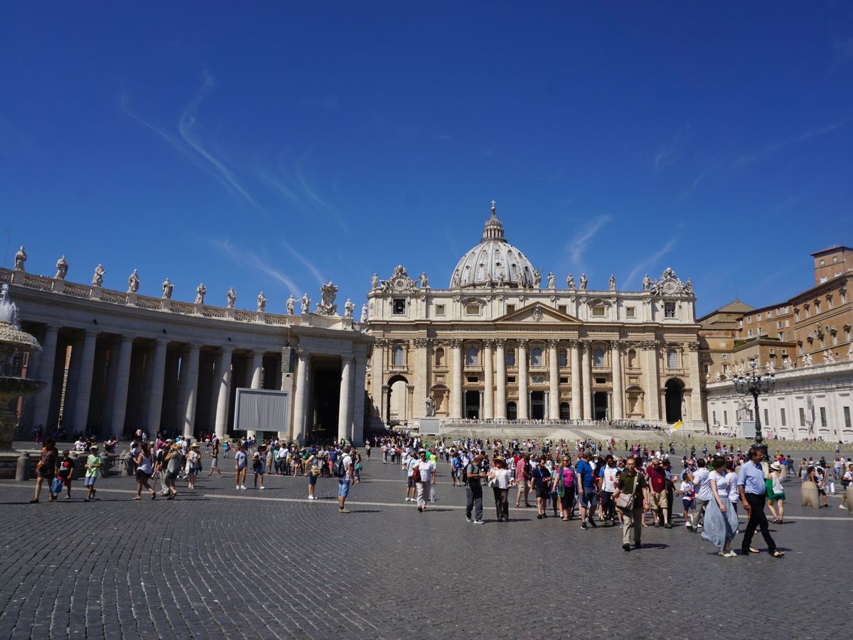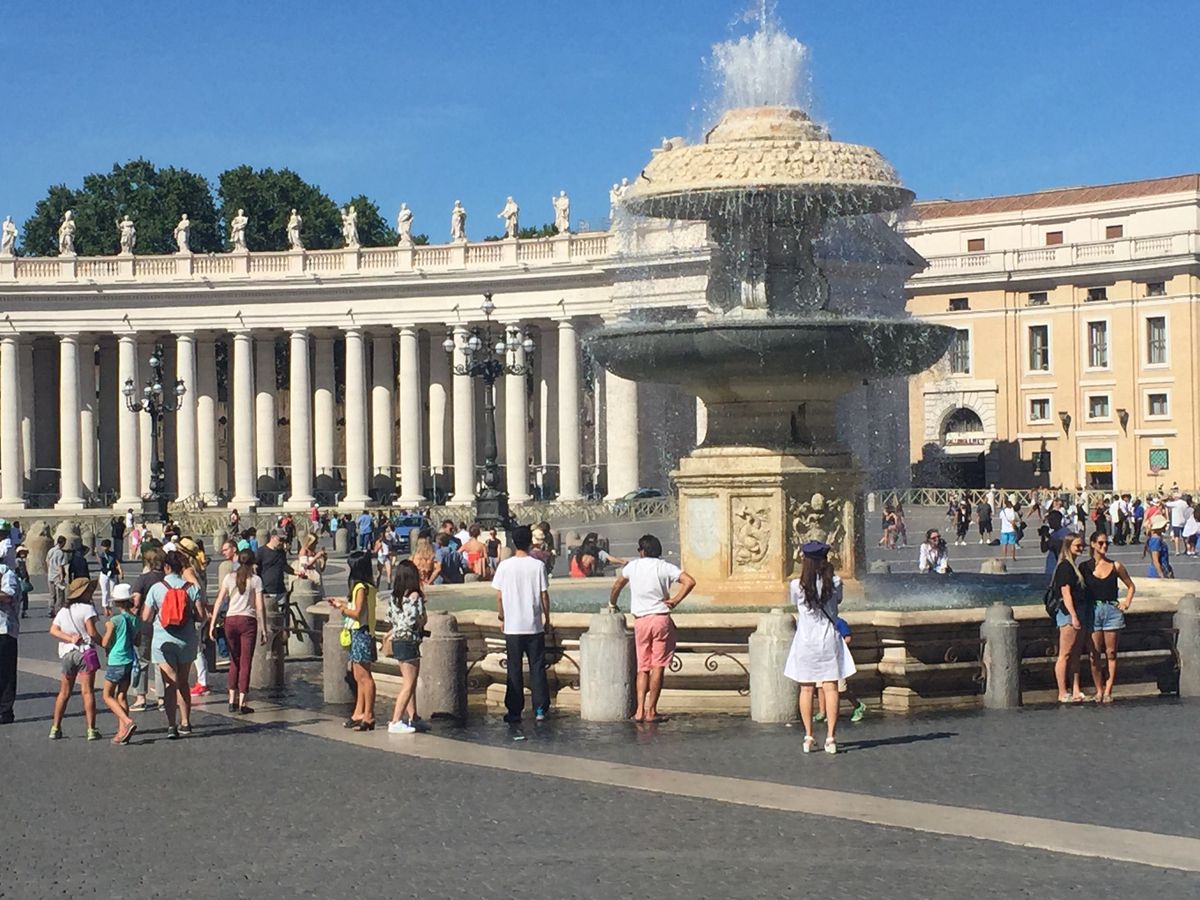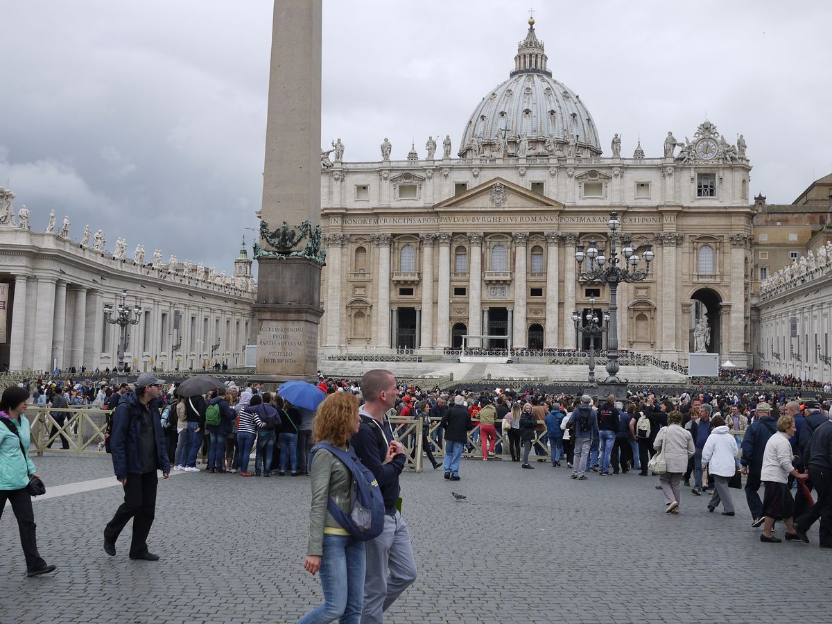 バチカンのお堀をぐるっと取り囲む長蛇の列を横目にスムーズに入場できる、とても良いツアーです。惜しむらくは、私たちが20リットルのリュックを持っていたため、入場口で預けねばならず、サンピエトロ寺院へ入れる出口を使えなかったこと。