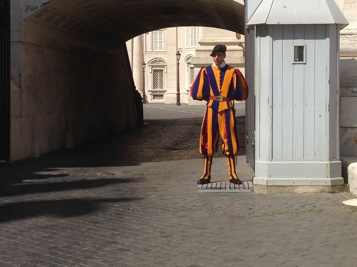 「最後の審判」は圧巻で、実際にみたら人生が変わることでしょう。こちらのツアーを利用すると、チケットを買うために長蛇の列に並ばずにすみます。美術館をゆっくり見たい方は、当日券を買って入るのがおすすめですが、限られた時間で、どうしても見たい方にはこのツアーはおすすめですよ。写真は、バチカンを守るスイス兵たちです。
