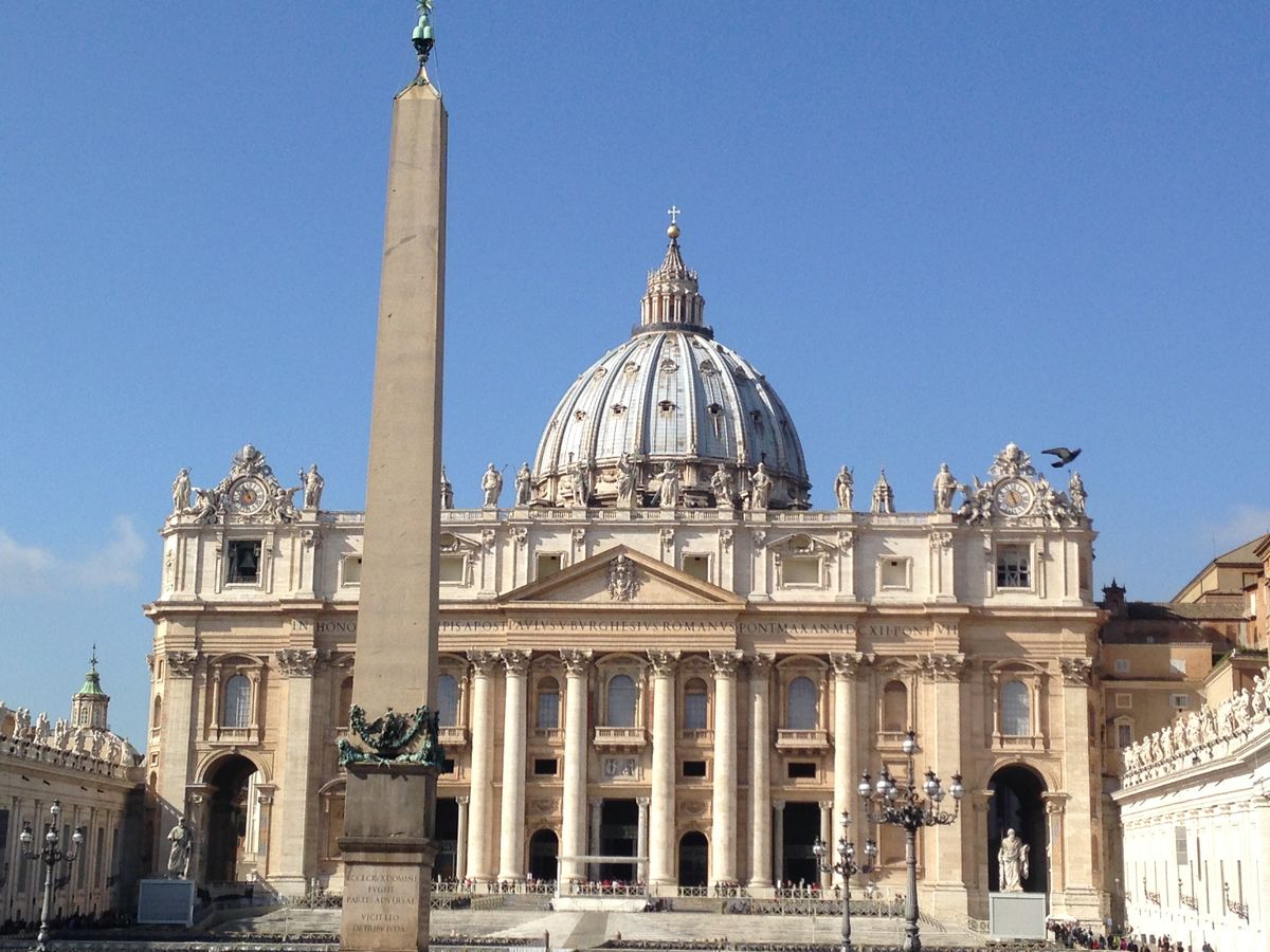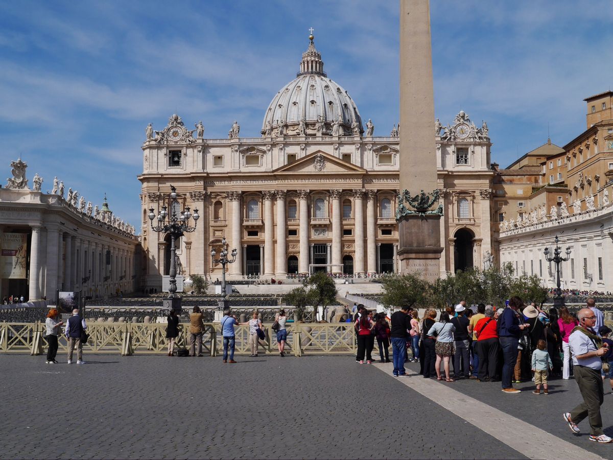 ここまでがツアーの内容でしたが、団体専用出口から出ると、そこは、サン・ピエトロ大聖堂のクーポラに上がる入り口のスタートラインというオマケも付いてきました。エレベーターを使うチケットを買いクーポラまで上がって降りてくると、今度はサン・ピエトロ大聖堂の中で、全て見終わって、サン・ピエトロ広場を出ると、ちょうど12時を回った所でした。