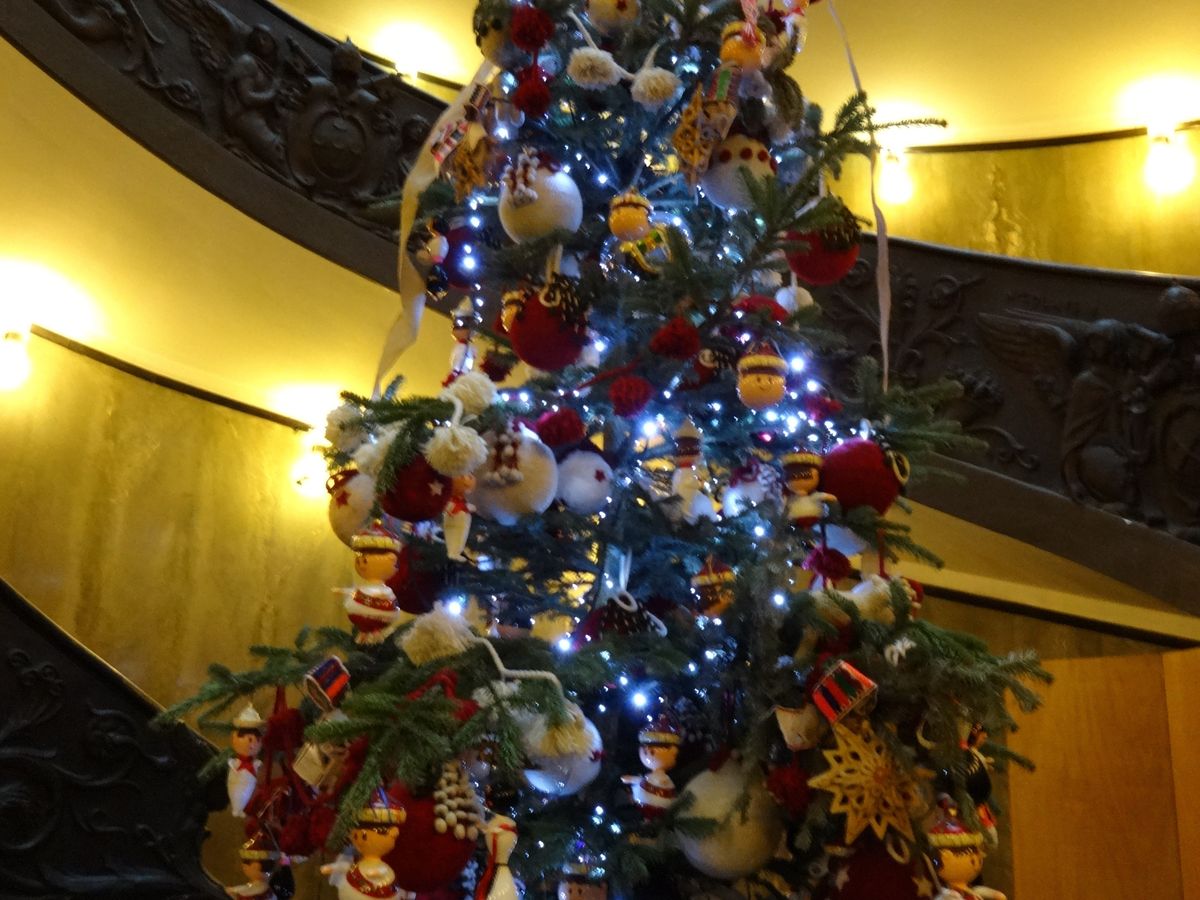 とは言え、ガイドさんの説明はポイントを押さえていてわかりやすく、ここぞというところでは時間を取ってくださったので、私のように初めて行く方にはおすすめです。また、システィーナ礼拝堂入り口で解散ですが、その時には、システィーナ大聖堂からサンピエトロ寺院に抜ける近道や、帰りの交通手段なども説明してくださいました。私は、入る前にカフェで休憩して、じっくりシスティーナ礼拝堂を見学し、その後ツアーに含まれてないピナコテカにも行くことができました。出口にはツリーが飾られていました。