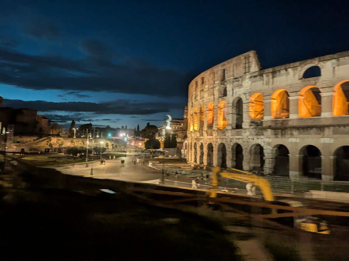食事の後は夜のコロッセオ付近を散策。初日の疲れもあり、散策は軽めにしてもらいました。