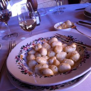 サンモリッツでは2時間程度しかありませんでしたが、駅のインフォメーションで教えてもらったレストランでスイスのワインと一緒においしいニョッキとステーキをいただきました。このランチのためだけでも、サンモリッツには来る価値がある、と思えるほど美味しかったです。