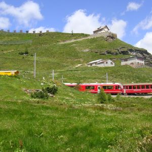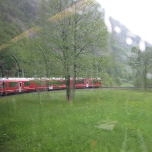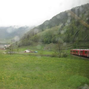 その日は生憎ミラノの天気は雨交じりでしたが、スイスに入ると晴天でカラッと涼しく最高の天気でした。ローカルな電車、バスの乗り継ぎもよく出来ており、問題なくサンモリッツに到着出来ました。途中、牧歌的風景も十分楽しめました。ベルニナ急行は綺麗で、値段の割に十分リーゾナブルと思いました。1つ欠点があったとしたら、ミラノへの帰りの普通列車がもう一つだったかな。