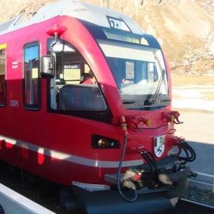 行きはバスでティラノ駅まで。ティラノ駅からサンモリッツ駅までベルニナ列車。