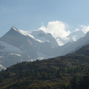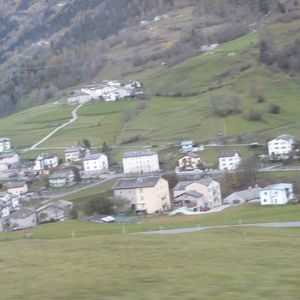 食後にサンモリッツ駅に戻ってベルニア急行に乗り込む。駅のホームには、青地にSt. Moritzと書かれた質素な白文字看板。その横に、「サン・モリッツ」と書かれたデッカイ木製看板がデーン。日本人は上客らしい。パノラマ列車で見晴らしは抜群。雄大なモルテラッチ氷河、美しい森や滝、4000m級の山々が連なるベルニナアルプスなど。天候はイマイチで、曇天。氷河は霧に覆われ、わずかな瞬間に覗けたのみ。湖も、霧の中。幻想そのものだ。快晴ならば・・との思いは拭えないが、それでもアルプスの光景は一生涯残るだろう。2253m高度のベルニナ峠を越え、約1800mの高低差をアップダウンして列車は進む。「世界一のろまな急行」と駅に書かれていたが、これだけの標高差ならゆっくりで十分。景色も堪能できる。有名な360度ループ橋も渡り、終点の国境の町ティアラへ。乗り継ぎ電車までは時間があり、しばし散策。この町もアルプスの麓で、町全体が美しい。