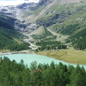 中でも氷河から溶け出した水が山肌を流れエメラルドグリーンの湖に流れ込む様は
