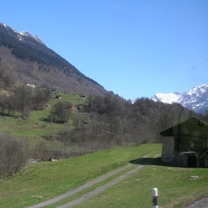 8月31日(日)8:20にミラノ中央駅で予定の列車に。2等車とはいえ、座席はゆったりし、日本のグリーン席よりも快適だ。ミラノの北、コモ湖の最南端付近にあるコリコで乗り換え。ここで唯一冷や汗をかいた。旅程表では1番線にくるキアベンナ行きの電車に乗り換えとある。電光掲示板を確認したが、1番線との表示。起点駅にもかかわらず、一向にそれらしき列車が入線してこない。いぶかしく思っていると、線路を挟んだ2番線に可愛い3両(正確には覚えていない)編成の列車がゆるゆると入線してきた。リュックを背負った、登山客らしき数名が次々に乗り込む。もしや2番線の電車ではないか?不安が脳裏をよぎった。「線路を横切るべからず!」。こんな看板を無視して線路を横切り、女性車掌に尋ねた。「ええ、キアベンナ行きよ」。何たることか、平然とした答え。慌てて1番線ホームで待つ妻に手招きし、線路を横切らせた。無法行為を車掌は見て見ぬ振り。