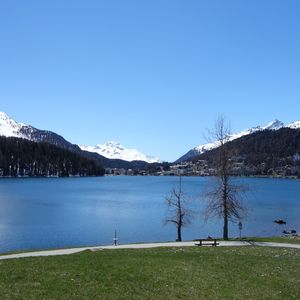 サンモリッツの天気は最高で、10月初旬でしたが気温も10度以上あって湖畔でのんびり過ごせました。