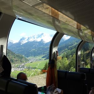 ベルニナ急行は、10月中旬だったためか、とても空いていたので、快適でした。列車からの眺めは、変化が多くいろいろな景色を楽しめます。2時間ちょっとの時間があっという間に感じました。