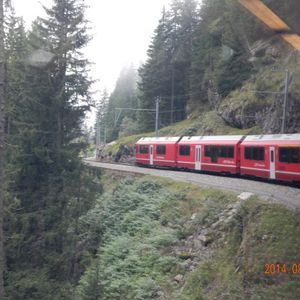 前日ミラノに入り、翌'14/06/30(月)06:20ミラノ中央駅発の列車でスイス小旅行に出かけました。朝が早く、かつファミリー(3人)での移動と言うこともあり、ミラノ駅にはちょっとだけ早めについて列車の発着番線を捜しましたが、結局出発8分前までディスプレーに掲示されず、また列車の乗車号車も各車内前側のデッキ上部の掲示をいちいち確認しないと分からないなどちょっと慌てましたがなんとか無事に乗れました。スイスまでの道程は列車とバスを乗り継いででしたが、湖も多くあり、景色のきれいな山岳を走っていてすばらしい景色を堪能できました。ただイタリアの駅などのトイレはどこも汚くて困りました。 サンモリッツ(海抜1856m)に着いて、早速ロープーウェーで海抜3057mの山頂まで登りました。ロープーウェー代は往復で72SFr/人(約1万円)とかなり高かったですが登る途中からと山頂とすばらしいパノラマを堪能できました。スイスは買い物や食事面では何もかもすごく高く、あまり手が出ませんでした。帰りはサンモリッツ急行列車に乗って、パノラマな車内から素晴らしい景色を堪能しました。急行列車終着駅のティラノ駅前の食堂で夕食をとっていたら予定より1時間早い列車が出るようで、急きょその列車に乗ってミラノまで帰りました。ミラノ着は20時半ごろでした。とてもよい天候に恵まれました。やはり6月中旬から7月上旬のこの時期が気候的にも良かったと思います。