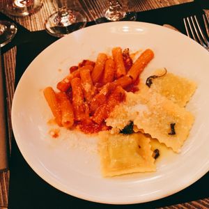 5月2日のお昼にセットメニューを予約して行きました。有名店なのでほぼ満席の状態だったので予約出来て良かったです。飲み物や前菜、名物のフェットチーネ、肉料理、デザートまで付いていてとてもお得感がありました。フェットチーネはとても美味しいのですが、一人前を一人で食べるのは少しくどいので、セットの半人前はとても良かったです。それと前菜の盛り合わせの中にあったモッツァレラも最高でした。