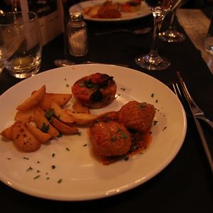 結構ガッツリなので、2品目でお腹いっぱいになります。3品目は肉料理。日本で言うミートボールをトマト系のソースで味付けしたものみたいでした。美味しいです。