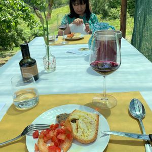 フランチャコルタでは分かり易い英語でのワイナリー説明でした。三種類のワイン試飲とチーズてサラミとトマトソースがかかっていたパンがついていて、どれもとても美味しくて大変満足しました。