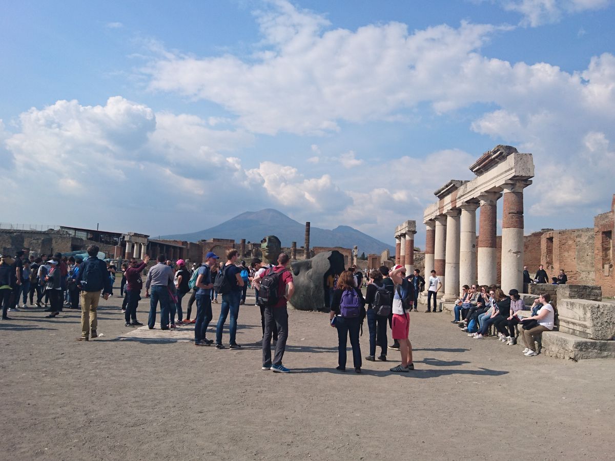ポンペイに行きました。昼ごはんはサービスエリア見たいなところでパスタとサラダを食べました。味はまぁまぁといった感じ。ポンペイの入り口に行き入ろうとしましたが、連休だったこともあり30分近く入り口で待ちました。