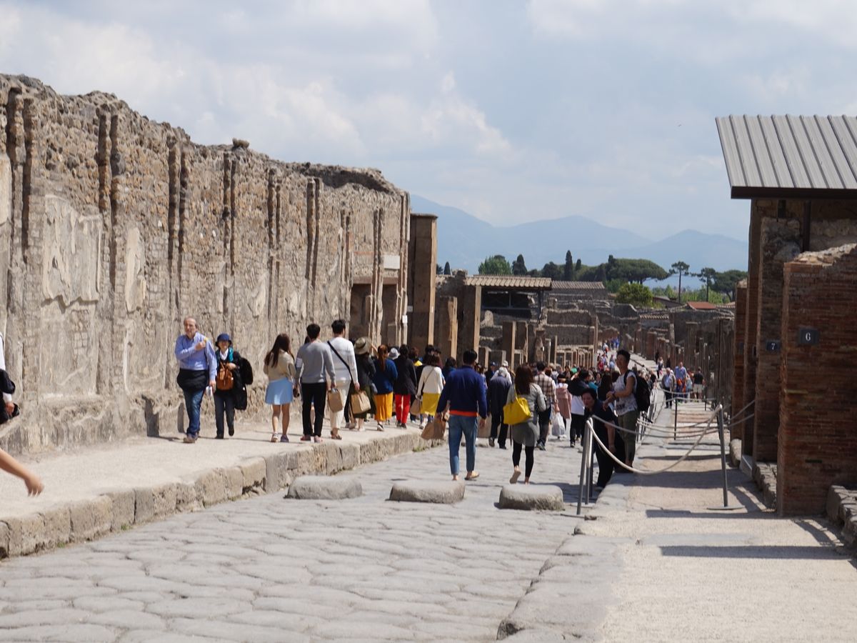 ポンペイ遺跡のようなところはガイド付きで解説してもらいながら見て回りたいと思い参加しました。ガイドさんは世界史の先生のようにテキパキ解説をしてくれて、理解が深まりよかったです。浴場や居酒屋、パン屋、轍の跡、人々が座った跡…2000年近く前の都市がまるごと残っているのは本当にすごい。ただ、発掘されたもののほとんどはナポリ考古学博物館に所蔵されているらしいので、余裕がある人はそちらも行ってみたらより理解が深まるのではないかと。