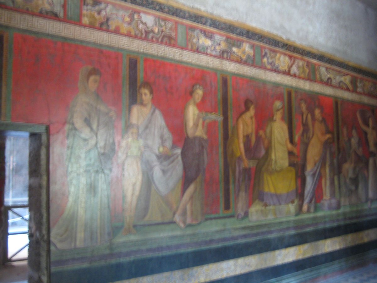 秘儀荘のフレスコ画も息をのむほどの美しさでした。