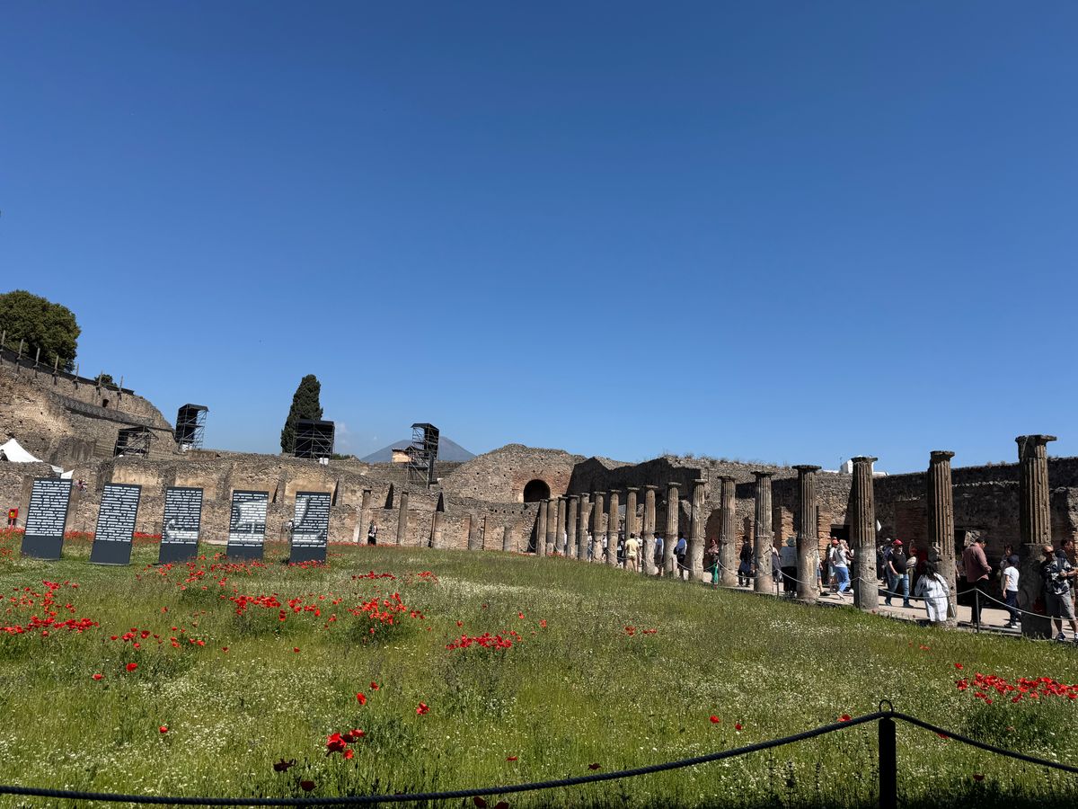 良いツアーでした、事前のやりとりでチケットのこと、集合場所などすぐに返事をくれます。ドライバーのエドアルドはフレンドリーで火山やナポリグルメなどの質問に快く答えてくれました。休日でエントランスは通常より混んでいましたが、ガイドのイザベラさんのおかげでスムーズに入場出来ました。ポンペイは大きくなる全て回るには3日かかるようですが、ポイントを効率よく、ほかの観光客がスルーするような場所でも色々教えてくれます。自分達のペースでまわれて良かった。暑さを心配していましたが、遺跡にはポピーが咲いていて、秘儀荘の近くはビワやザクロの実があり、予想外に緑豊かで穏やかな1日でした。