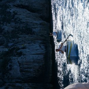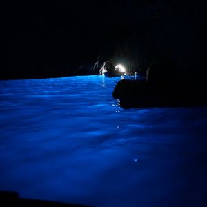 私たちの順番となりカメラを構えてボートに乗り込みました。入り口は想像と違い、すごく狭かったです...。体を倒してドキドキしながら洞窟に入ると、そこには素晴らしい光景が待っていました!小さな入り口から差し込む外光に照らし出される海の青さは、言葉で表現できない美しさです。