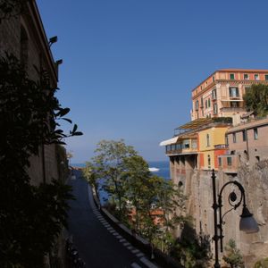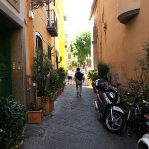 お昼はソレントで、前菜、レモンパスタやティラミスを食べ、海に向けて映画のセットのような街並みを散歩しました。