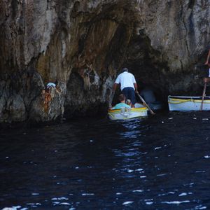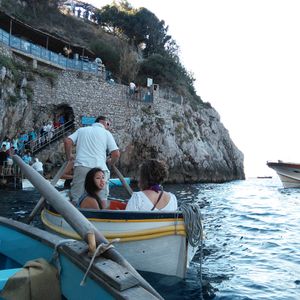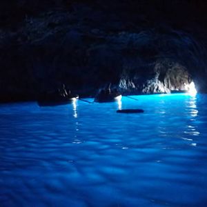 そして、船を乗り継ぎ、念願のカプリ島へ。近頃の天候不順のせいもあり、青の洞窟に入れるかベテランのガイドさんもはっきりと断言できないとのことでした。が、私達全員の思いが通じたのか、海も荒れず、入ることができました!
