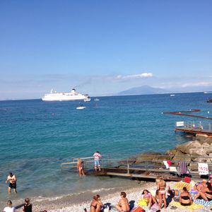 ナポリへの旅は初日の旅でしたが、ローマからポンペイへの高速道路は日曜日で渋滞もなくスムーズにポンペイに着き、ガイドさんの説明も解りやすくユーモアも混ぜながらの1時間程の説明でした。その後ソレントに移動~海岸線を山に沿って走る景色は素晴らしい一語です。初めて食べるレモン味パスタ~何かソースをかけたかったかなー!!でもソレントの町はきれいな落ち着いた街並みです。その後待望のカプリ島へ船で移動しました。また20人位の船に乗り換え青の洞窟へ~ラッキーでした。始めての体験なのに入れるなんて奇跡です(笑)本当に美しく神秘的で圧倒されました。そこにいる事がうれしくてうれしくて興奮しました。この欲張りツアーに参加して本当に良かったです。帰りはナポリからヴぇスビオ火山を見ながらの夕食タイム