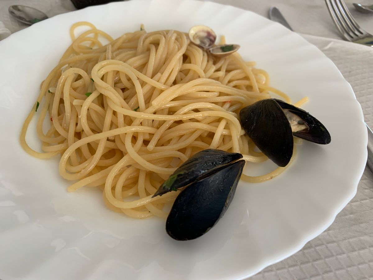 それからナポリに戻り、考古学博物館前でランチ(別料金)パスタがおいしかったです。