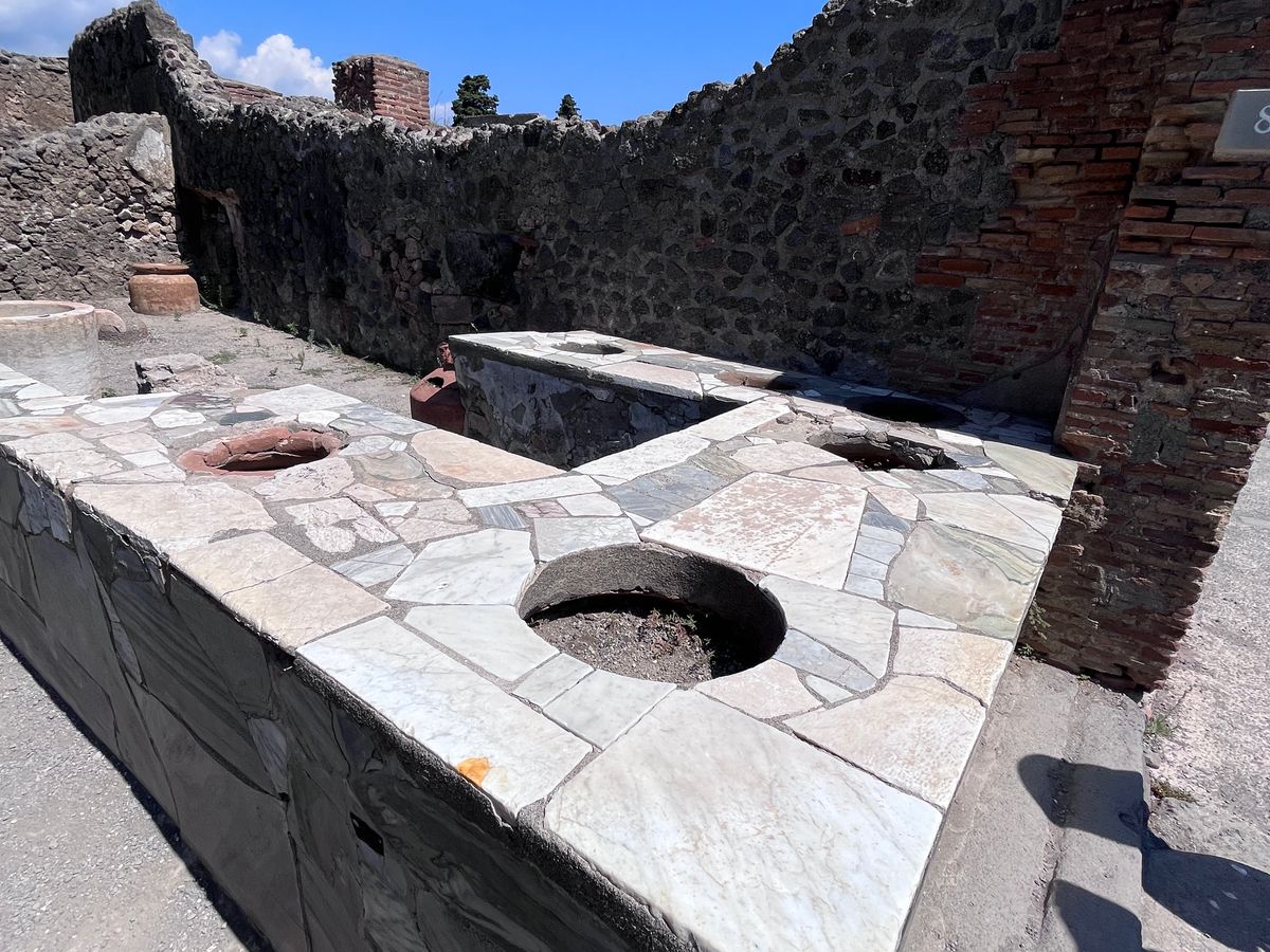 本当に奥深く、紀元前後という時代にすでにこんな新しい構造の街が出来ていたということに驚きでした。道や建物の区画、上下水道の設置、各種店舗や庭付きのお屋敷等等。中でも街中の銭湯の造りと規模にもビックリ。6月末の酷暑の中での見学でしたが、イニシエの人々の知恵に対する崇敬の念に耐えませんでした。
