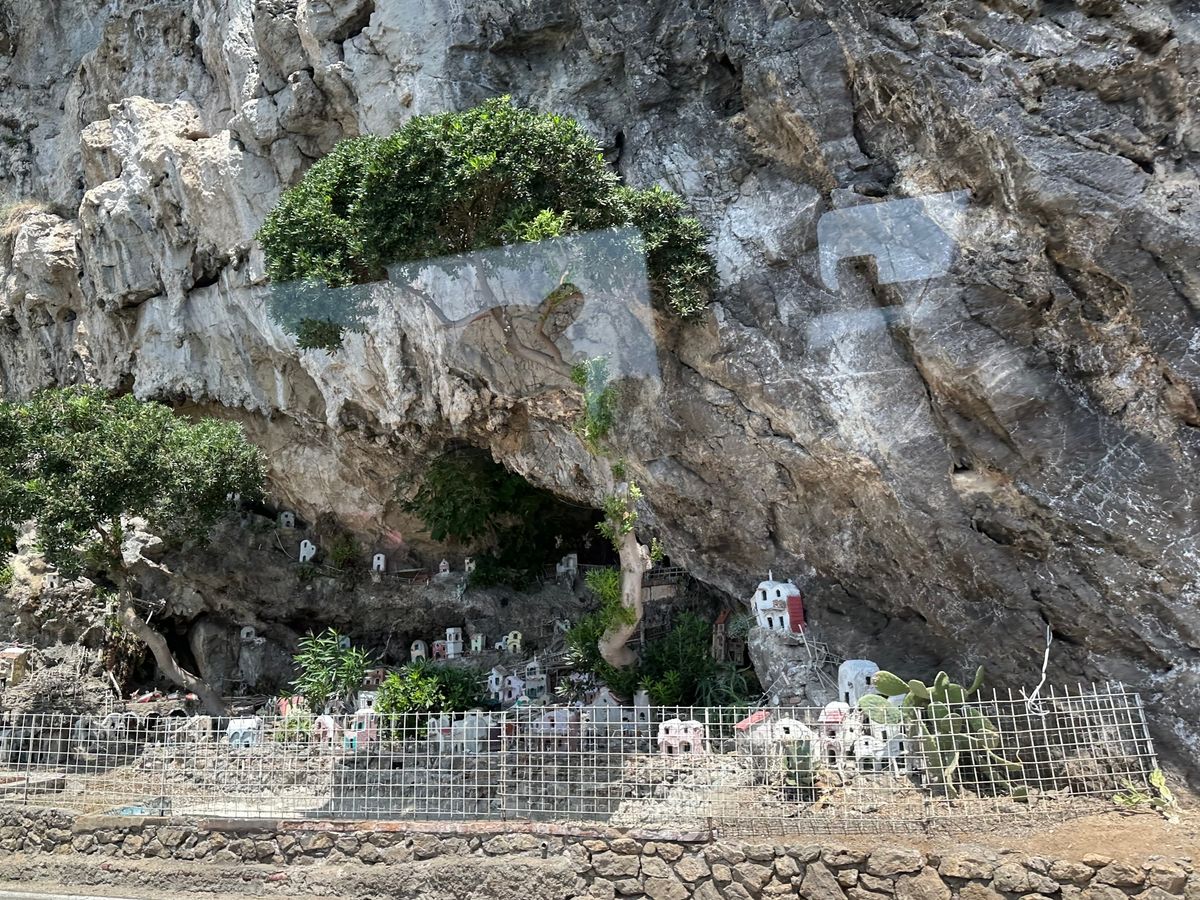 エレベーターの故障があり、エメラルドの洞窟は船で行くことになり(追加料金)、取りやめてアマルフィをゆっくりする事もできるとトニアさんに提案していただきました。折角来たので、エメラルドの洞窟に船で行きました。途中海側から断崖絶壁のアマルフィの景色を見れた事は良かったです。エメラルドの洞窟は想像してたものよりこぢんまりとしていて、これだけ?とびっくりしてしまいましたが、綺麗なエメラルドの海と案内の方のパフォーマンスを見ることができたのでそれでよしと納得しました。結果行って良かったと思いますが、その前に散策したアマルフィの街中で見かけたら教会の中を見ることができなかったので、別の選択でも間違えではなかったのかな…と思ったり。時間の関係で両方選ぶことが出来ないので仕方ないですね。