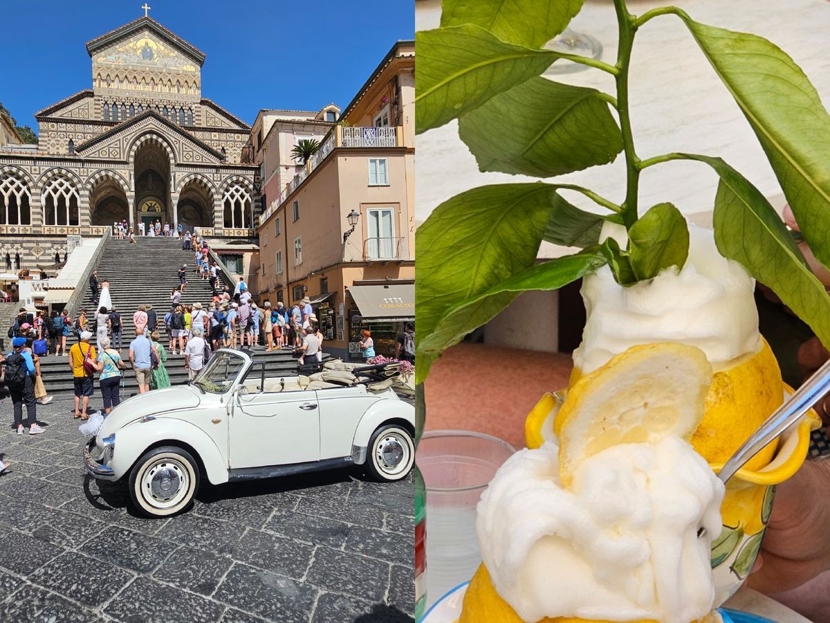 アマルフィ海岸の美しい海を見ながらの快適なドライブができました。ポジターノで買った絵画とかわいい陶器が自宅に帰っても楽しい旅の思い出を思い起こさせます。アマルフィの教会も美しかったですがオーバーツーリズムで人混みがすごく、歩きづらかったです。アマルフィのいい匂いのレモンに触ったり、日本人好みの香水を入手したり、お気に入りを見つけられました。