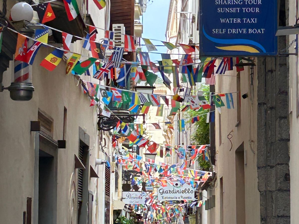 先んじてヴェネチアとピサを訪れることになっており、イタリア海軍旗にあるのははあとジェノバとアマルフィだなと思って、今回ポンペイを止めてアマルフィを選択しました。