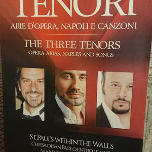 このコンサートはもおどの位になりますか?歴史があるのですよね。以前私一人でローマを訪れたことがあり その時は火曜日の椿姫と今回と同じ金曜日の三テノール・コンサートを鑑賞し 一人で感激して興奮していましたが今回は妻をエスコートしなければなりません。 先輩気取りで勇んで 街の灯が照り映える石畳の寒い夜道をリードして教会に着くことが出来ました。教会自体はあまり大きくはなく庭園も小さ目でしたが立派な大木が聳えていました。まだ30分以上時間が有りましたので 教会の入り口で写真を撮ってもらったり 周りのお店をウインドゥショッピングしました。A席の列に並んでいると若い女性が テキパキと前から4列目の席に案内してくれました。正面に宗教画が半ドーム状に上方にのびていました。ヴァイオリン、ヴィオラ、チェロ、ピアノの音が程よく教会に響きウットリと聞き惚れていました。3人のテノール歌手はそれぞれに特徴的な個性が有り 異なった声色と共に楽しませていただきました。演奏と歌が終わる毎にブラボー ブラボーでした。休憩にイタリアのリキュールが振る舞われました。増々冷え込んだ夜道も大満足の余韻と共にあっという間にホテルに到着。楽しかった。有難う。