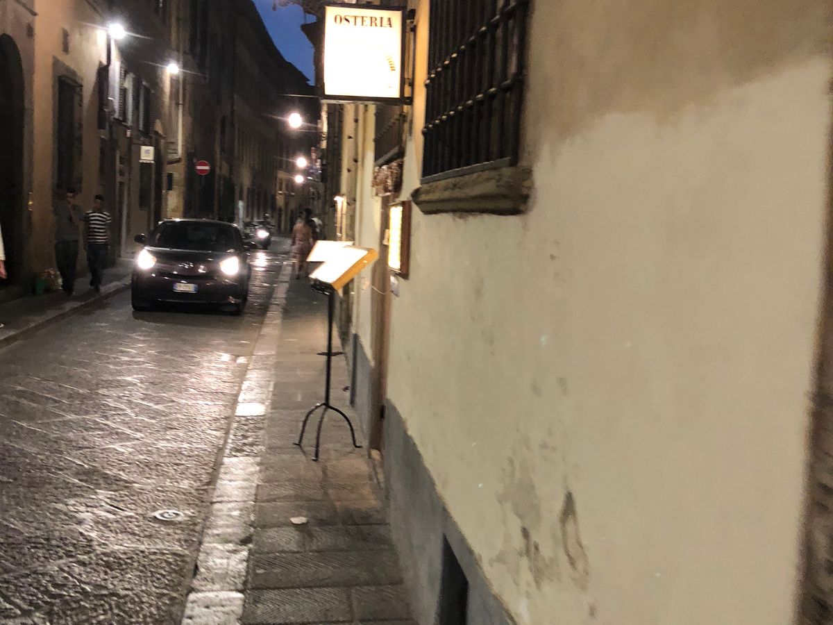 集合場所のレストランに私たち夫婦は時間前に到着。わかり難い路地裏のような場所でしたが、フィレンツェ市内はこんな路地ばかりなんですよね。私たちが1番かと思いきやポルトガル人の3組の老夫婦が先に店の前に待っていました。なぜか気が合い食後も一緒に教会に行きました。