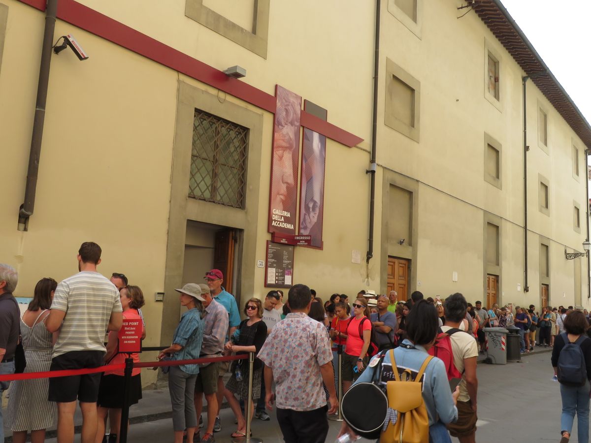 美術館前は予約していない人の長蛇の列。ウフィツィはむしろ列がなかったようで、アカデミア美術館の方が人気なのかもしれません。交通渋滞などで予約時間より30分ほど遅れましたが入ることができました。