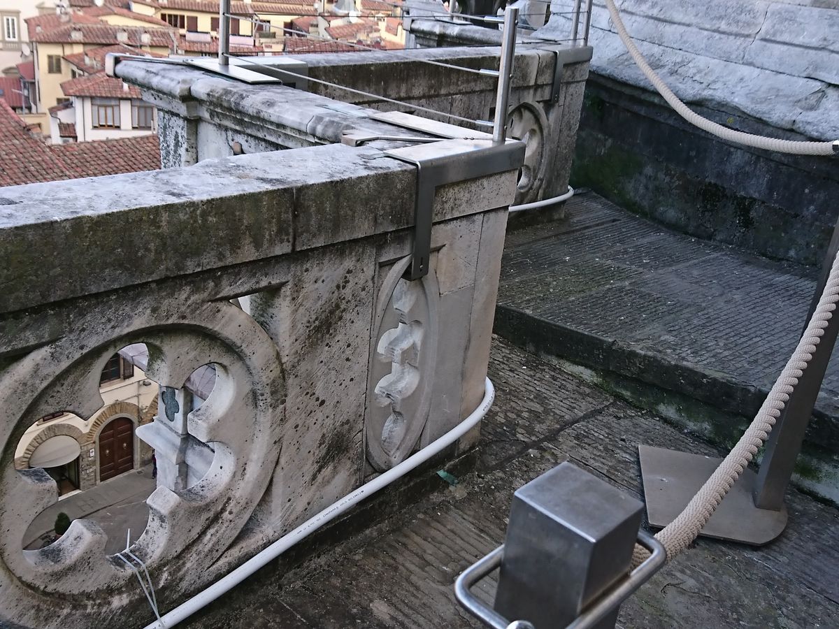 屋上テラスに寄って、しばし解説を聞きつつ景色を楽しむので、一気にクーポラに上がるより楽だったと思います。このテラスからの眺めがあれば、ジョットの鐘楼に上らなくても十分な気がします(たぶん)。
