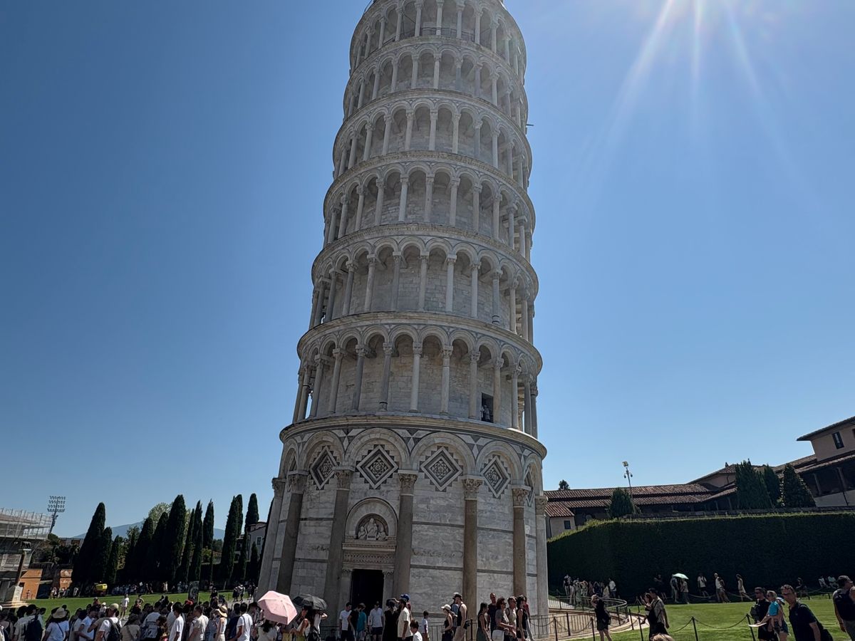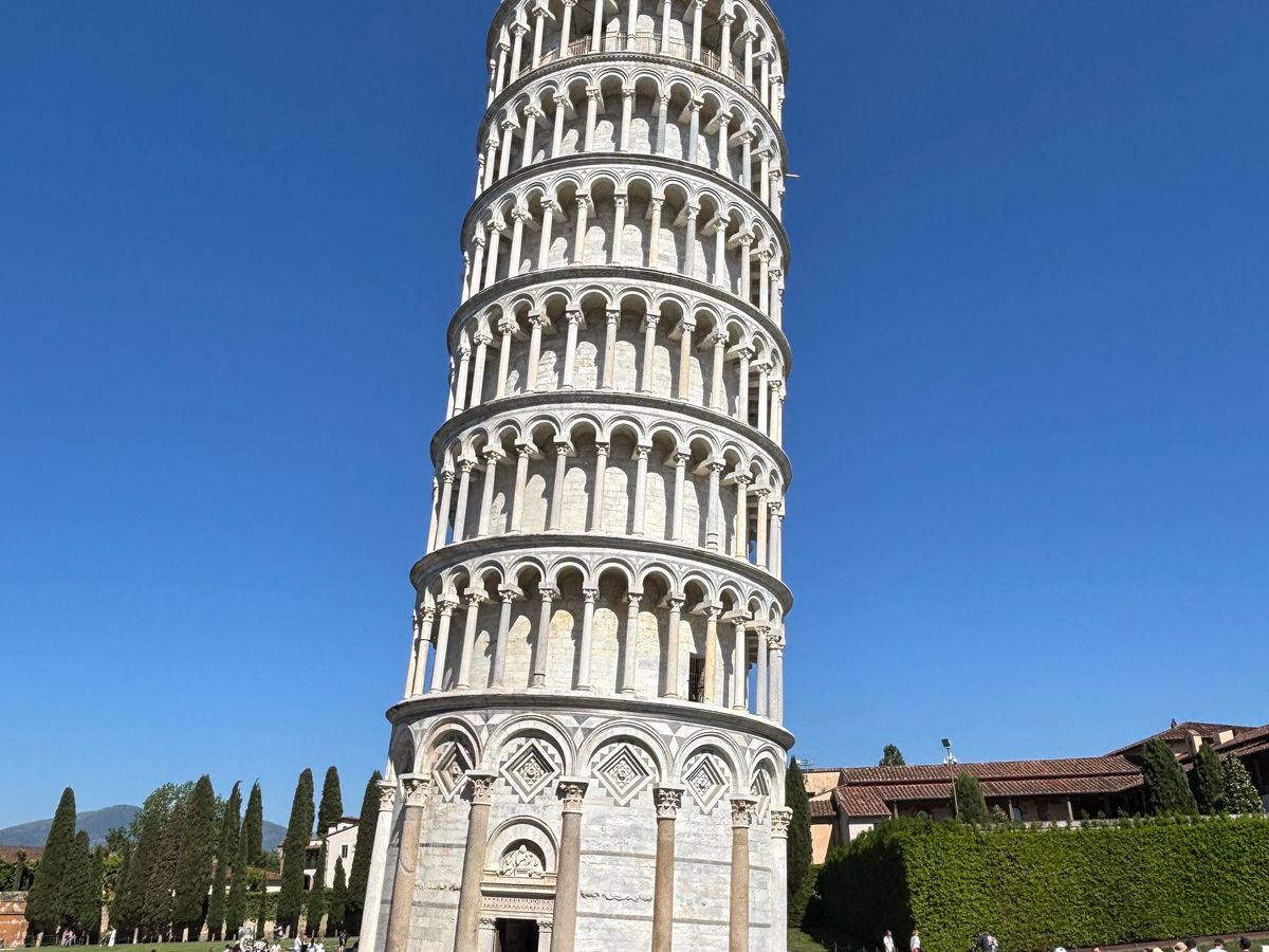 頑張って朝8時集合&出発だからピサの斜塔はさほど並ばずに登ることができる。ピサまでのバス往復バスから観る田舎の景色もいいもんです。2025年6月21日イタリア:ピサ