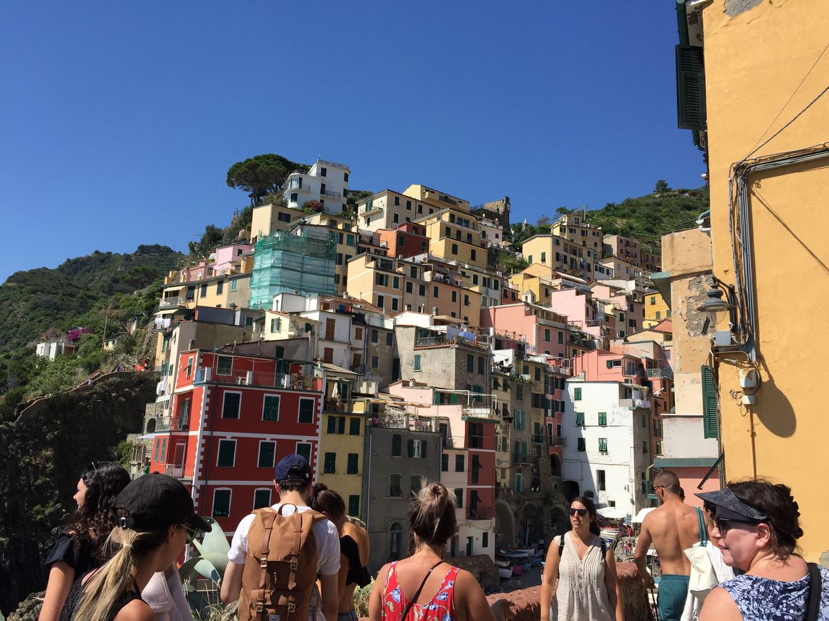 バス2台120人のツアー。チンクエレッテ(5つの漁村)の内4つの漁村を回るコース。カラフルな家の観光は2箇所、数分の観光。後は酷暑に耐える1日。同伴者が3つ目の漁村で海水浴を楽しみ、私はパラソルとビーチチェアー(25ユーロ、シャワー完備)でお昼寝。海はきれいです。海水浴の予定があれば楽しめます。観光だけなら夏は暑すぎ、人が多過ぎかもです。