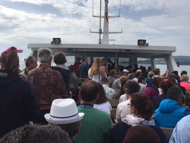 海が荒れていた様で船での観光は無く、電車の4回の乗り降りで4か所を見て回るツアーになりました。どの駅のホームも観光客で大混雑し階段は1人では身動きできないほどの混雑で大変でしたが、行く先々の景色はとても素敵した。参加者が2階建てバス満員の人数で、日本語アシスタントに数名、中国語アシスタントに数名、後の40名位?は多言語ガイドについて、移動し観光し待ち合わせし、リーダーガイド1人では目が行き届かないであろうところは、参加した観光客同士が声を掛け合ってフォローしあい、よく無事に1人も迷子にならずに集合場所まで帰ってこれたと驚きのツアーで、リーダーガイドは大変だっただろうと思いました。