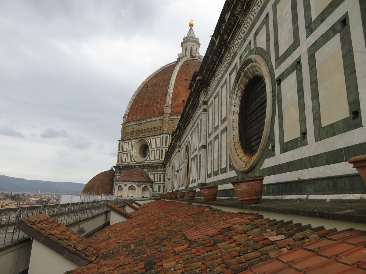 特別に入場出来る屋上テラスからのドーム屋根をまじかに見られた。また見晴台に行く前のバルコニーからドーム内側天井画(最後の審判)がまじかに迫ってきました。生憎の曇り時々小雨でしたが、十分満喫しました。尚、大変混んでいたので、階段が大渋滞でしたが、ルールを守りながら割とスムーズに移動出来ました。