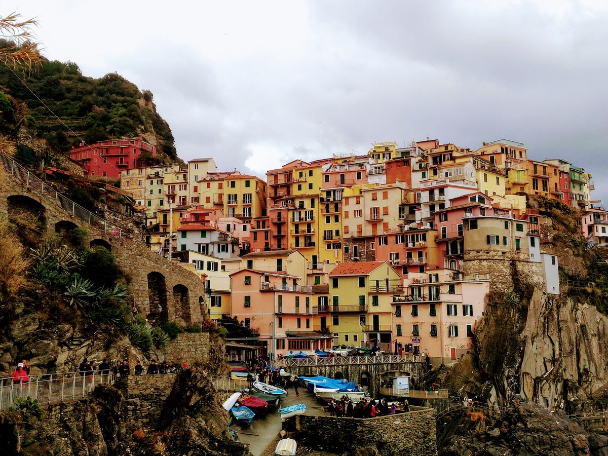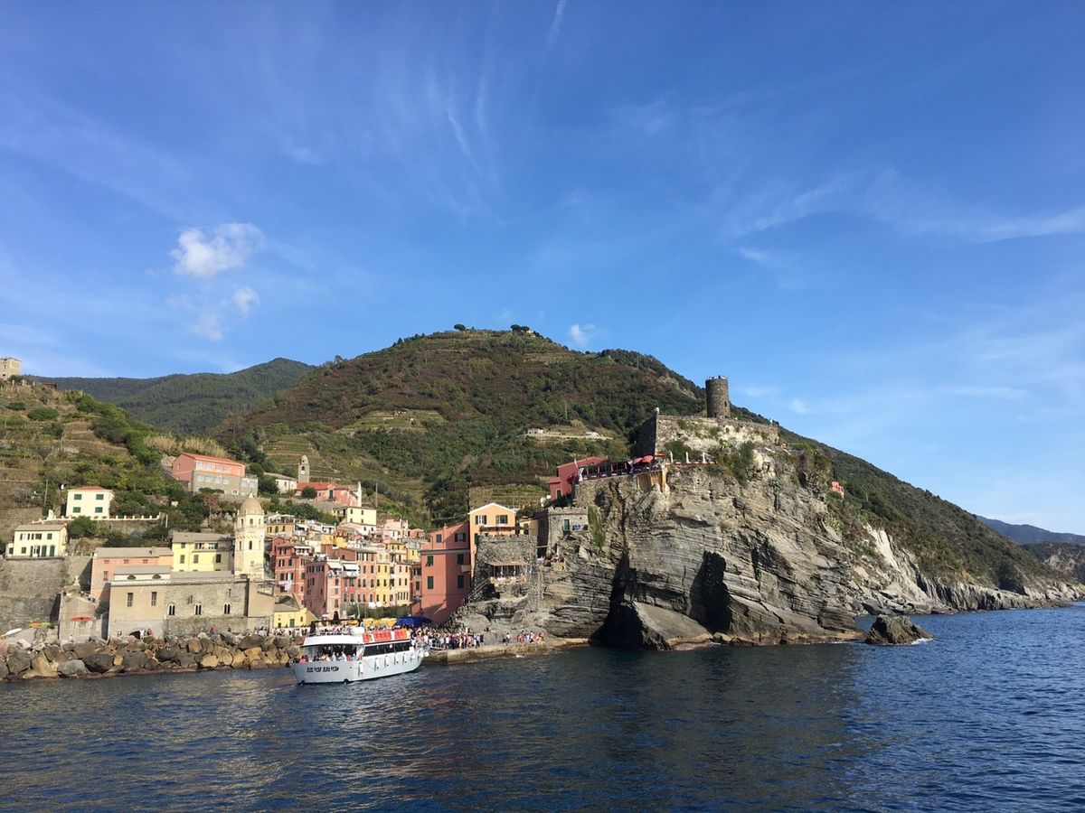 チンクエテッレに向かう途中バスからアルプスが見えたりと感動から始まり、感動で終わるツアーです。また、絶景に癒され、大満足のツアーです。日本語ガイドは日本人の方なので、安心して一日過ごすことができました。ユネスコに登録されてから観光客でいっぱいのチンクエテッレですが景色を見てるだけでとても癒され、観光客でいっぱいでもお店は沢山あるので問題ないと思いました。ただトイレを探すのは苦労しました。公衆トイレは有料もしくはレストランに入って何かオーダーすれば使えます。ゴミ箱は至るとこえろにあります。 絶壁に建つ建物ももちろんですが、海がとても綺麗でちょっと足まで入ってみましたが全然ベタベタしなくて気持ちいいです。島々の移動は電車、ボートです。(ボートは45分程乗るので寒くなりました。)自力ではなかなか簡単には行けないとこなのでツアーで行くべきだと思います。時間もしっかりとってくれるのでゆっくり過ごせます。