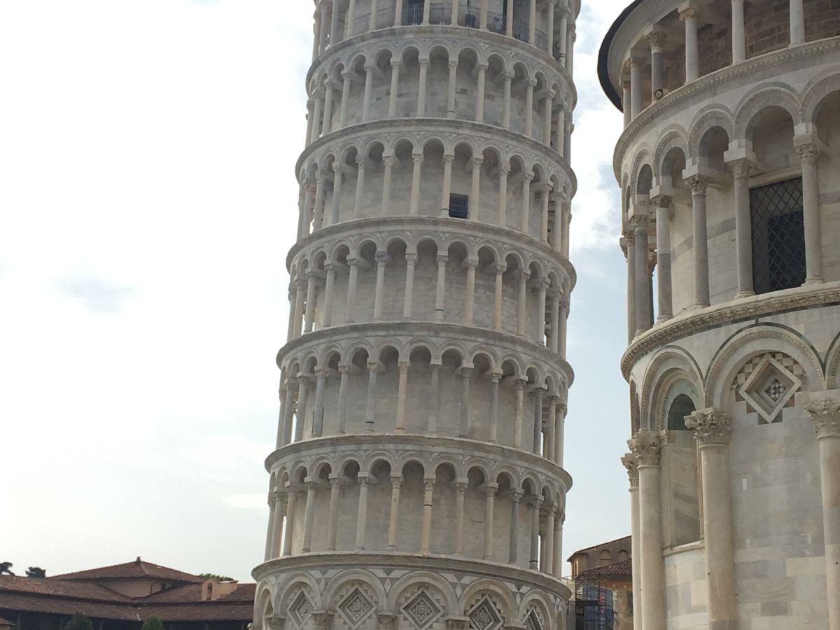 ピサの斜塔はやはり傾いていて円筒の細い階段を5階分くらい上がっていくのですが、階段自体も傾いているのを感じました。階段が大勢の人の足跡で石が磨り減っているのが印象的でした。
