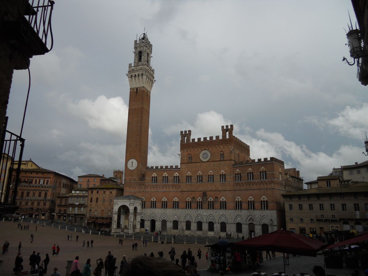 朝、ほとんど人のいない街中を歩き、集合場所へ。さて、1日で3ヶ所を巡ってくれるツアーの始まりです。まずは、ピサです。斜塔は斜塔だけあって見事に傾いていました一度は見ておく価値ありです。次は、サン・ジミニャーノです。ピサでは、かんかん照りだったのに、雲行きはあやしくなり、着いたときには、寒~~い!!世界チャンピオンのジェラート食べて、お手洗いを済ませたら、なんと、ほぼ集合時間。。もう少し町並みを楽しみたかったかも。バスを待っている間に、雨が降り始め、他のツアーバスのお客さんは傘を借りて差していましたが、うちのツアーはガイドさんのみ、ムムム。。トスカーナの景色を眺めながらワイナリーへ、そして着いたときには雨は本降りになっていました。でも、雨のブドウ畑もなかなか情緒がありました。テイスティング以外のワインと水以外の飲み物は、別料金なのでご注意を!さて、ラストのシエナです。ガイドさんのお話は興味深いものでしたし、暮れゆく広場のカフェで、ゆっくりと頂いたワインも記憶に残るものとなりました。よくばりなツアーですが、初めての方にはお勧めします。