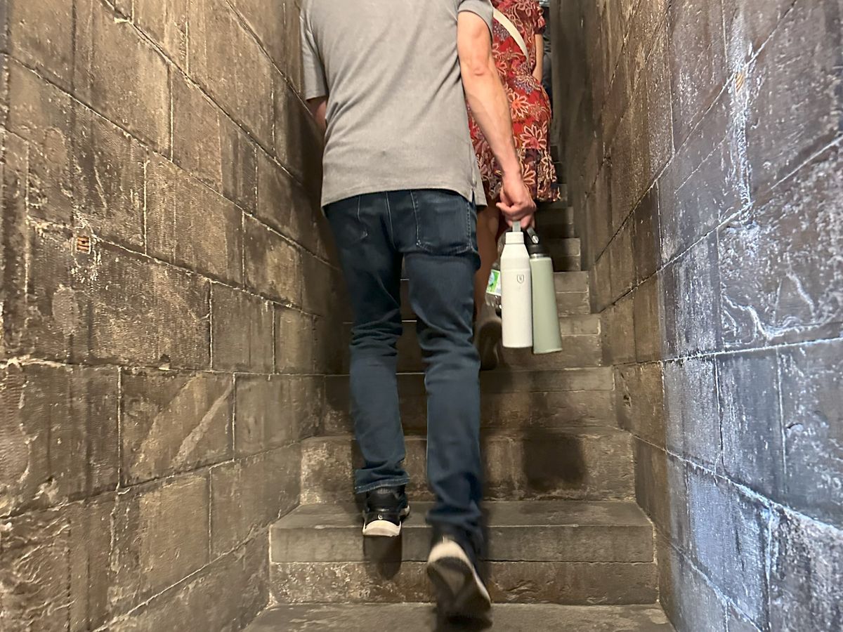 ・途中で水の確保や飲み物の購入などを優しく問いてくれたが、基本的には集合前に一人一つ水を持って行った方がいい。階段をひたすらに上がり続ける時間が長いので、体力があっても水分がないと館内に入ってから補給できるタイミングはないので厳しい。正直、これ以上年齢が高かったらしっかり休養して準備しないと厳しかったと思う。