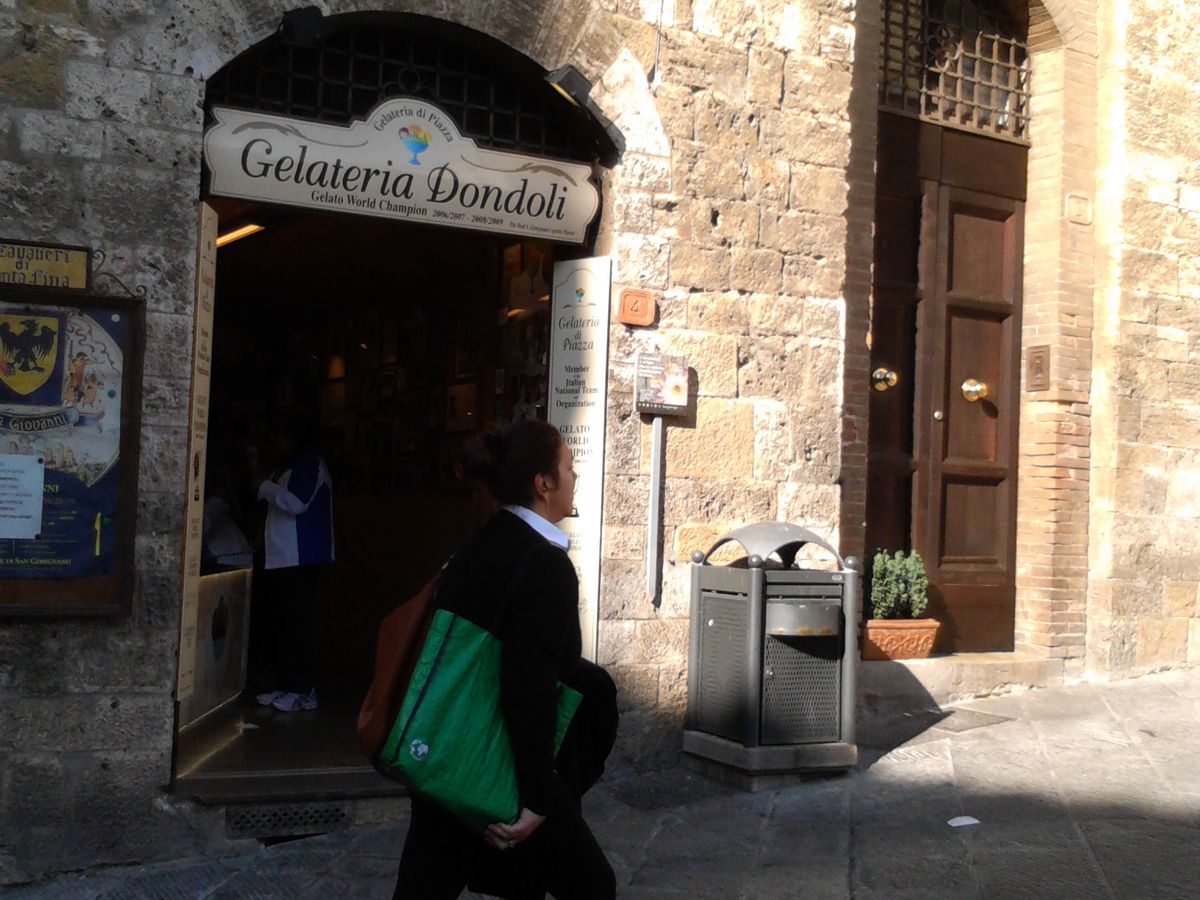 世界一のジェラート屋 DONDILIもあります。すごく美味しかったです。おみやげ物屋もいっぱいあるので、(フィレンツェで買うより安いです)ショッピングも楽しめます。教会に入りたかったですけど、日曜日のミサ中で入ることができませんでした。
