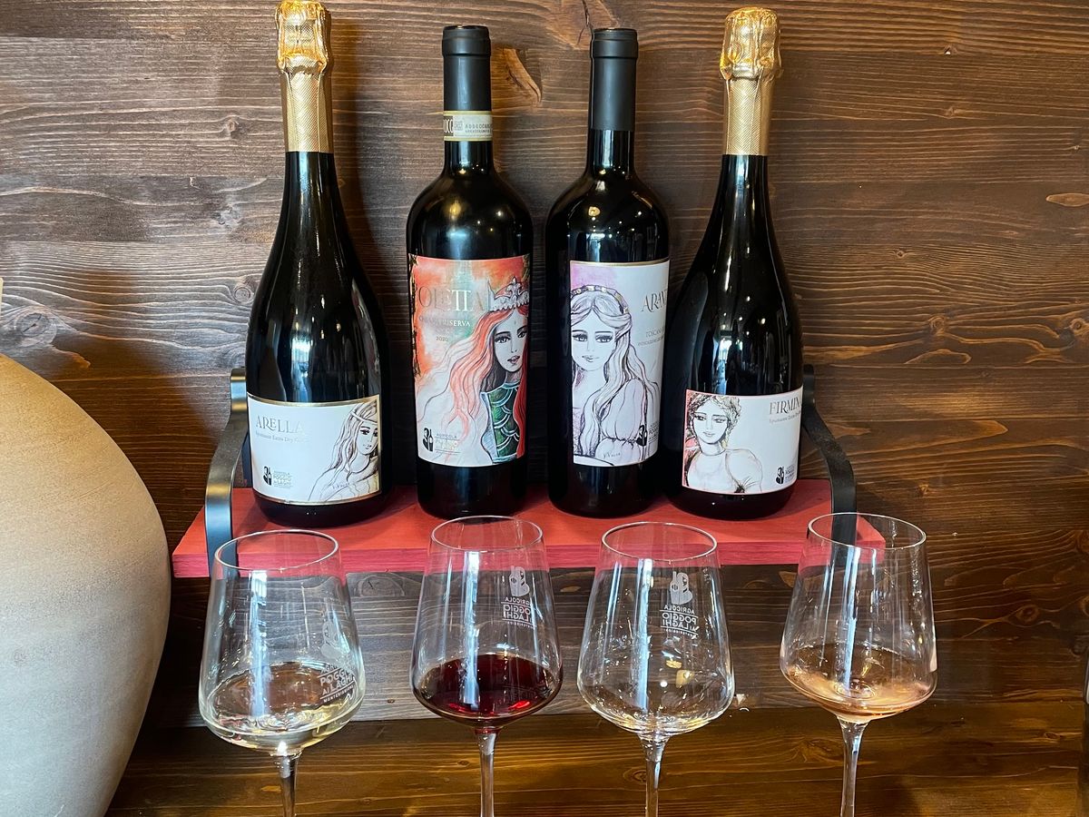 途中モンテプルチャーノのワイナリーで試飲しました。少しずつ5種類のワインを試しただけで、内容は今ひとつ。