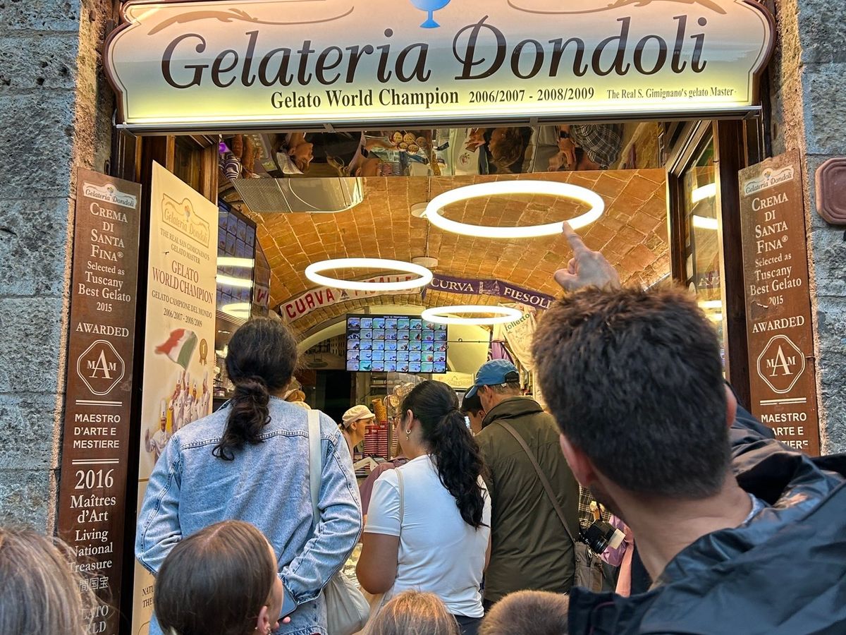 行きのバスが故障し、予定が大幅に変更となり、シエナの観光時間が短縮されたため、目的の大聖堂のみの見学となり昼食をスキップして予定時間に集合場所に戻ると、次の目的地に向かうバスが1時間遅れで到着となり、雨は降ってくるわで悲惨な状態。世界中から集まったツアー客のリアクションも様々。これはもう腹を括ってこの悲惨さを楽しむことにしました。3台目のバスはワイドで最も快適、キャンティワイナリーの試飲では大いに盛り上がり、その後のバスの中は皆一致団結楽しい旅ができました。サンジミニャーノのグランプリを獲ったジェラートは絶品。オススメです。