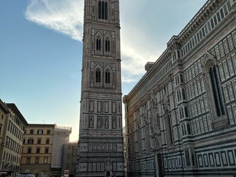ガイドのTさんとはわたしの都合でサンジョバンニ洗礼堂の天国の扉の前での待ち合わせでした。笑顔の可愛い方で散歩しながらフィレンツェの歴史や遺跡のお話を楽しく伺いました。イタリア4日目ともなるとツアーのピザ パスタ 肉 芋の食事に食傷気味でした。優しい笑顔で料理のリクエストを聞いてくださり、お肉はもちろん美味しい野菜料理のあるお店で楽しい時間を過ごしました。フィレンツェの夜景を背景に結婚30年記念の写真をたくさん撮って頂き本当に有難うございました。