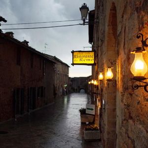 奥様は上機嫌でガイドさんと試飲してますが、私は少し酔いも回ったので先に外に出て一人でモンテリッジョーニの街並みを散策します。